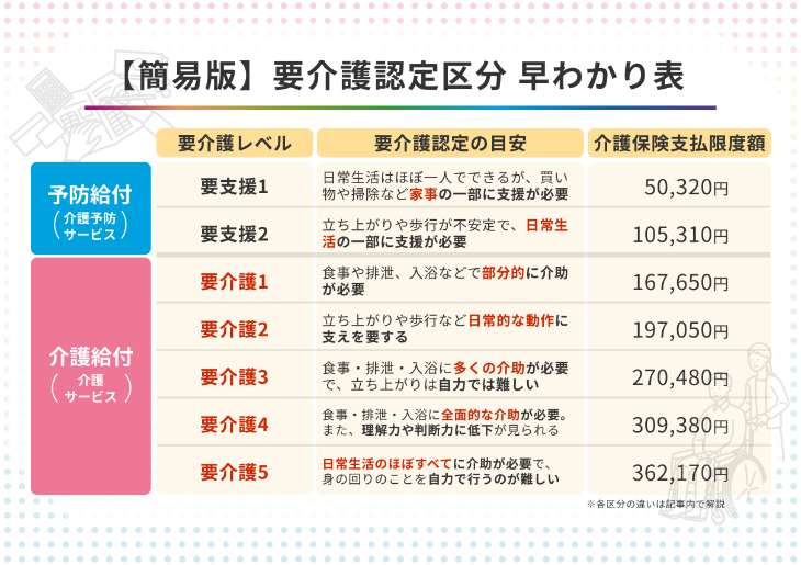 【要介護認定区分早わかり表】要支援・要介護の違いや受けられるサービスがすぐわかる